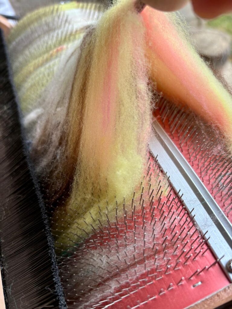 Lavo la lana a mano, la cardo y la hilo con rueca o torno, dejándome guiar por la textura y la historia que cada vellón trae consigo.