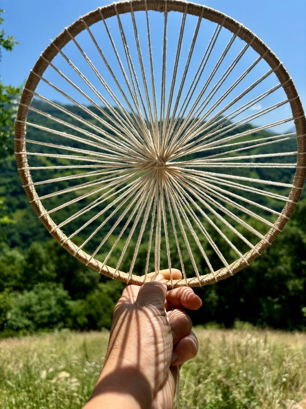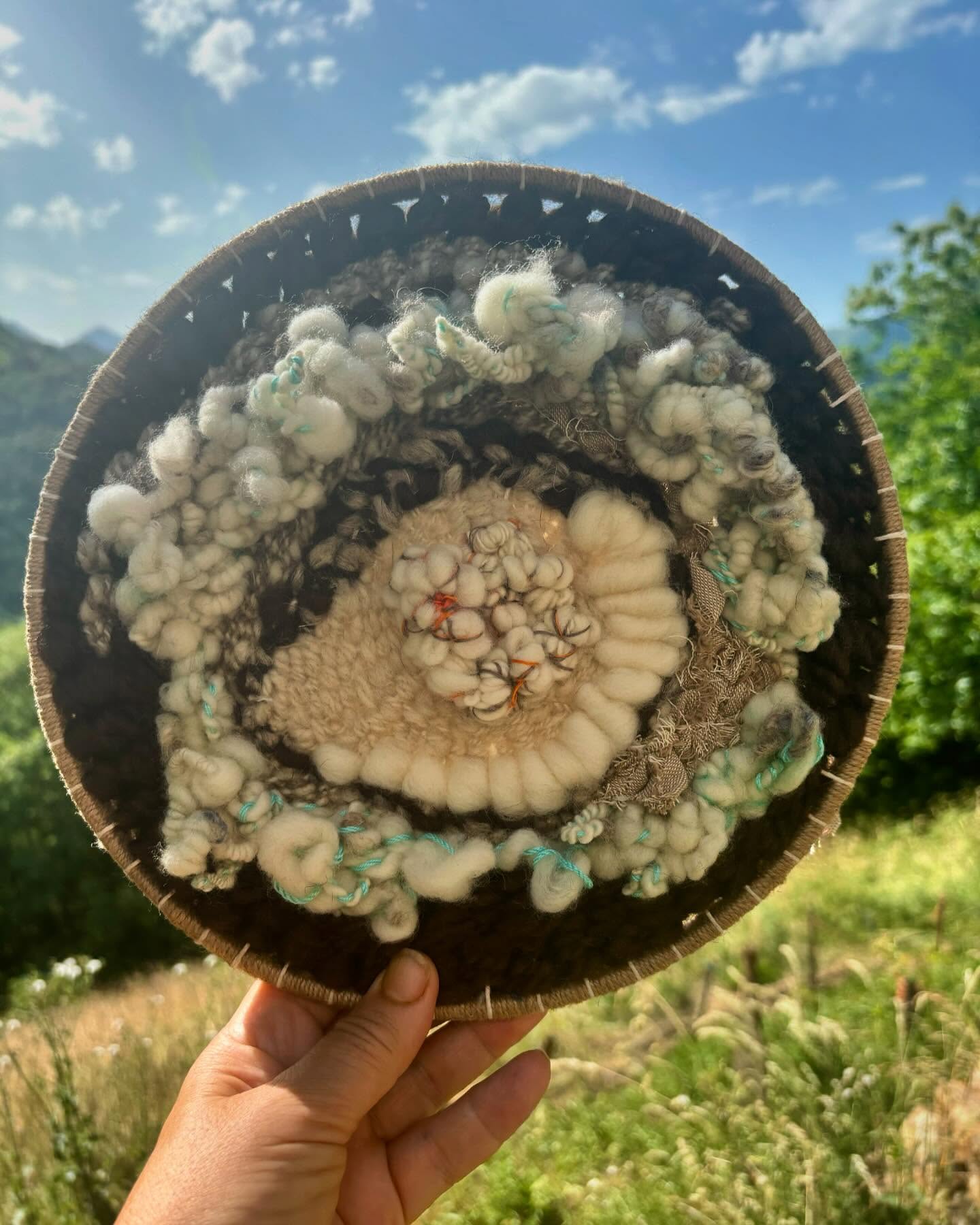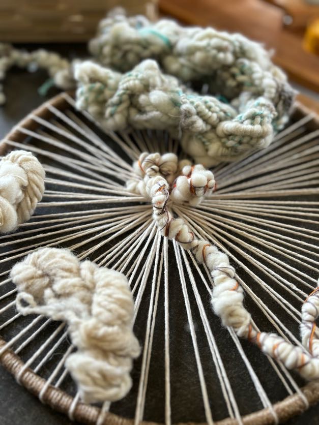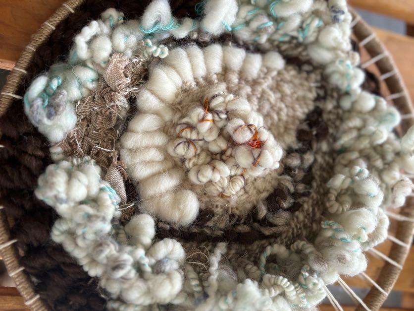 Tapiz circular realizado  lana merina en colores naturales